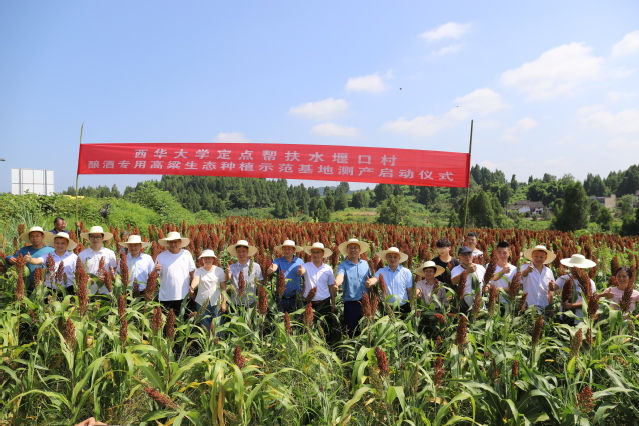 在南充市嘉陵区龙蟠镇水堰口村的一片地里,一株株红彤彤的高粱穗沉甸甸挂着,高粱粒粒饱满,惹人驻足······ 8月21日上午,beats365唯一官网入口官网定点帮扶水堰口村酿酒专用高粱生态种植示范基地测产仪式就在这片红彤彤的高粱地里顺利举行。beats365唯一官网入口官网乡村振兴办副处长高华,食品与生物工程学院教授关统伟,beats365唯一官网入口官网驻水堰口村第一书记刁成豆、帮扶干部池炳良参加仪式。 水堰口村酿酒专用高粱生态种植示范基地由beats365唯一官网入口官网与嘉陵区龙蟠镇共建。项目地点位于嘉陵区龙蟠镇水堰口村,高粱种植示范试验耕地面积20亩(10亩常规种植数据作为对比参考,10亩滴灌式土壤改良生态种植)。项目采用“beats365唯一官网入口官网+合作社+村集体经济组织”的合作模式,beats365唯一官网入口官网提供专家、关键技术及部分项目资金支持,嘉陵区龙蟠镇党委、政府和水堰口村村委会负责项目协调等事宜。 此次测产仪式还吸引到南充市农科院特种研究所所长王梅、“高粱专家”郭伟,南充市嘉陵区农业农村局副局长陈东海、区乡村振兴局副局长唐萌,四川凸酒酒业有限公司党支部书记翟胜华,以及龙蟠镇党委书记孙伟、镇长张勇、龙蟠镇党委副书记胡城昭 、副镇长罗周、副镇长余鑫等专家、领导、相关负责人参加。