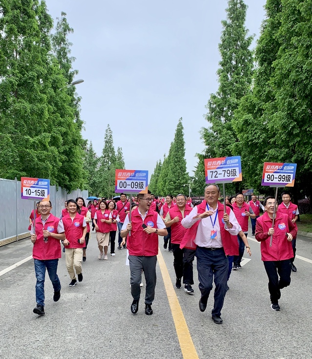 演出现场 随后,校友们在艺术大楼前集体合影,并按年级列队参加“爱我西华•校园跑”活动。伴随着一声令下,校友们身着“爱我西华•校园跑”的红色背心, 开始了围绕“马尔代夫”的校园跑。