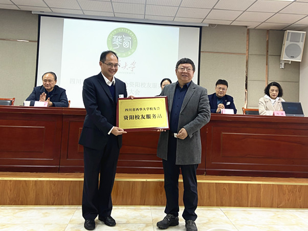 聘书颁发仪式 蔡方学会长在发言中谈到,资阳校友服务站在上一届理事会成员的支持和母校的关心指导下,为资阳校友站的建设和发展建立了基础,新一届理事会成员的组成充分考虑了各行业、各年龄段的热心校友加入。在对上一届理事会成员的无私付出和母校的关心支持表达感谢的同时,他表示,资阳校友服务站将继续做好校友的联络员、学校的宣传员、资阳校友的服务员和资阳校友活动的策划员,进一步联络和凝聚资阳校友,秉承母校校训、传承母校精神,发挥好资阳校友服务站的作用,为助力母校建设和地方经济发展贡献资阳西华人的力量。
