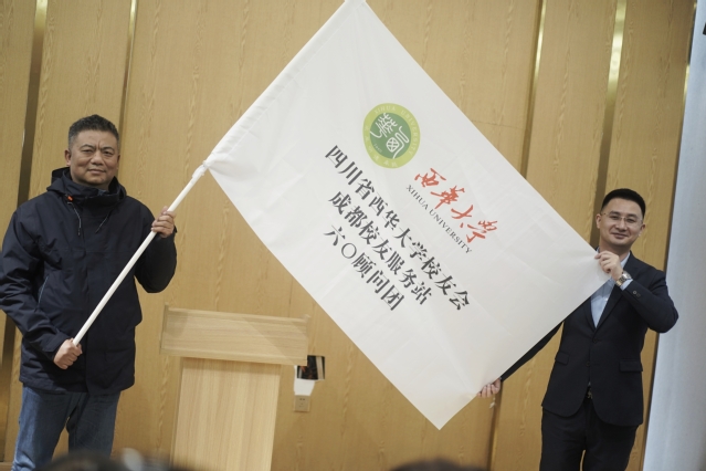 六〇校友顾问团首任团长徐和平作介绍 在全体与会人员的见证下,孙强校友代表成都校友服务站向六〇校友顾问团常务副团长马泽林校友授旗,随后,到会的六〇校友顾问团成员们与母校老师合影留念。马泽林校友表示,六〇校友顾问团的校友们将会不断发挥“六 顾问团”为“感恩母校,回忆青春”、“出谋划策、牵线搭桥”、“跨界交流,商务旅游”、“创新模式、抱团养老”四大功能的作用,汇聚老一辈校友的力量,打造一个资深校友的温馨家园,为年轻校友的成长助力。此外,他还对六〇校友顾问团接下来的发展提出了自己的意见和建议,希望六〇校友顾问团能吸引更多校友加入,整合更多校友资源,丰富校友生活,为校友发展赋能,为母校发展助力。