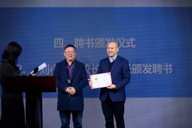 学校党委常委、副校长刘小兵为名誉会长代表邓大林颁发聘书