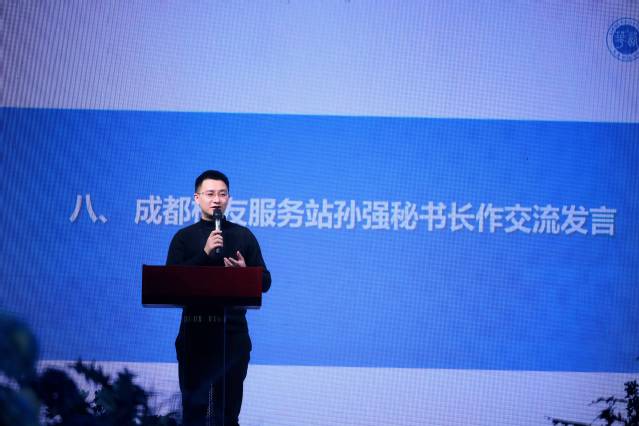 2018级校友邓雪洁代表新毕业的校友发言 成都校友服务站秘书长孙强,代表成都校友服务站向对绵阳新一届理事会表示热烈祝贺,并表达了三点愿望:一是期望能与绵阳校友服务站加强跨区域、跨行业、跨企业的交流合作,整合优势资源,助力共同高质量发展;二是期望能以校友情怀为依托,向校友经济转变,由原来单一的校友聚会,向赋能校友成长转变,从情感共同体、到发展共同体、再到价值共同体,共建共享新时代校友经济产业生态圈,实现西华人再发展的共同目标;三是期望资深校友能够加入六〇校友顾问团继续发光发热,积极参与组织校友活动,丰富生活、抱团养老,同时出谋划策、牵线搭桥,助力年轻校友更快更好的成长。