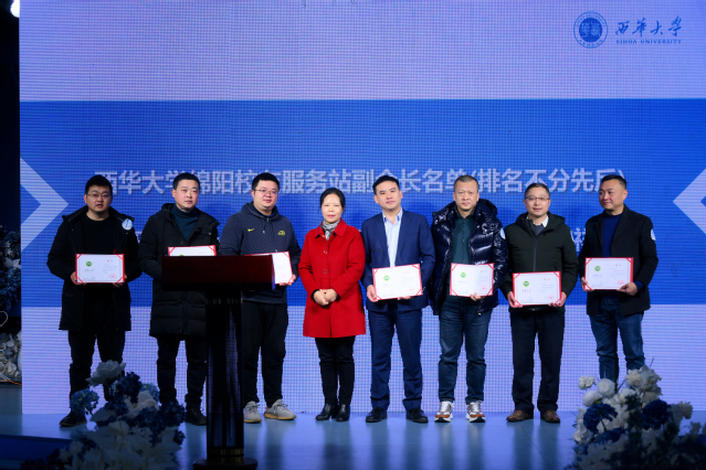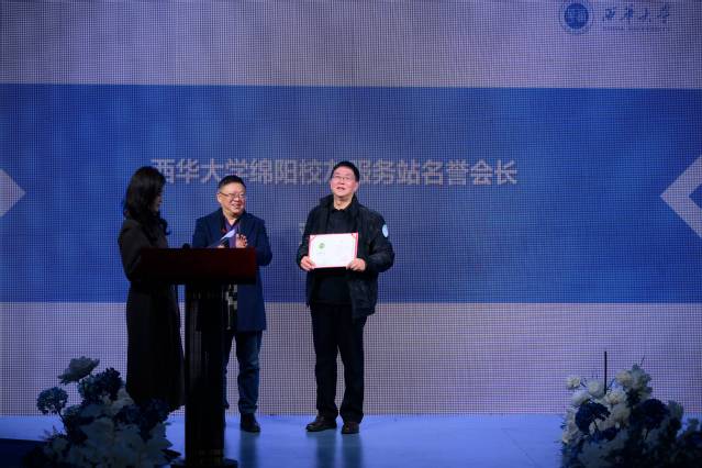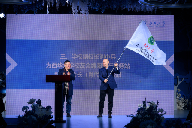 学校党委常委、副校长刘小兵为绵阳校友服务站授旗