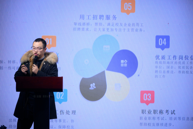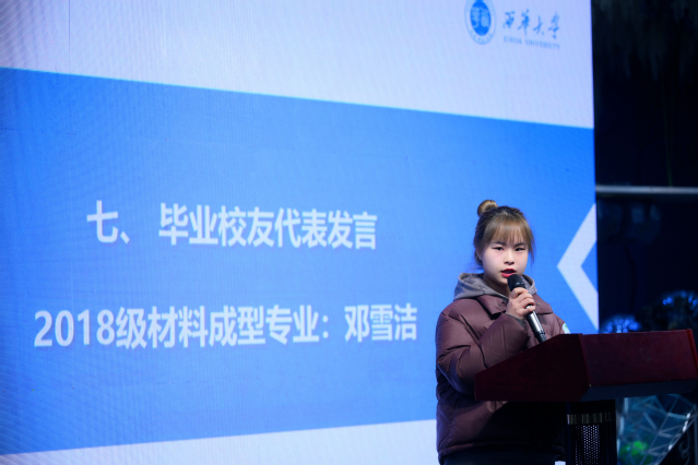 08级曾建勇校友介绍绵阳就业创业招聘人力资源服务小组 会上,2018级材料成型专业校友邓雪洁代表新毕业的校友发言,她表示绵阳校友服务站给她带来了很多温暖与感动,同时也表达了她对绵阳校友服务站的感谢。是校友们一次次守望相助产生的凝聚力,促成了今天欢聚一堂的盛况。并希望接下来有更多人能融入进来,参与到校友服务站组织的活动中,主动为校友们提供帮助和服务。她愿意以学长学姐们为榜样,在这个平台上继续学习、进步,希望有朝一日她也能成为照亮后辈的灯塔。