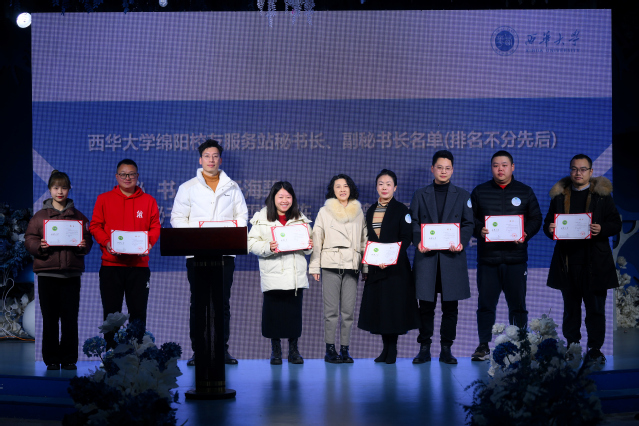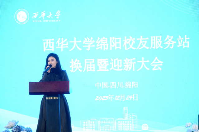 2023年12月24日,四川省beats365唯一官网入口官网校友会绵阳校友服务站换届暨2024年迎新大会在绵阳市高新区辛店子悦溪谷生态酒店举行。beats365唯一官网入口官网党委常委、副校长刘小兵,四川省beats365唯一官网入口官网校友会会长、校友工作处处长王丽娟,计算机与软件工程学院党委书记杨志松,大健康管理学院党总支书记王相平,校友工作处副处长、四川省beats365唯一官网入口官网校友会副会长邱健,校友工作处科长邓远洪,学校校友工作处张欧,成都校友服务站秘书长孙强,绵阳校友服务站上一届和新一届理事会主要成员及校友代表共100多位校友参加了此次会议。会议由管理学院2006级会计学专业古宇婷校友主持。
