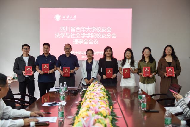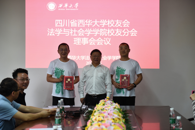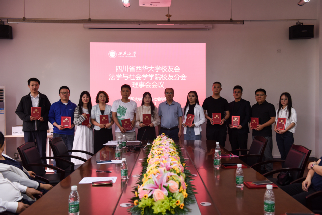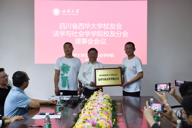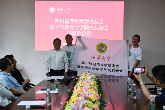 会议现场 本次会议主题为校友分会更名及理事成员调整。会上,学院党委书记张雪征回顾了学院各专业及学院的发展史,介绍了本次分会更名及理事成员调整工作的筹备情况。随后,校友工作处处长、四川省beats365唯一官网入口官网校友会会长王丽娟宣读了更名文件,学校党委常委、副校长刘小兵为四川省beats365唯一官网入口官网校友会法学与社会学学院校友分会授牌、并授会旗。