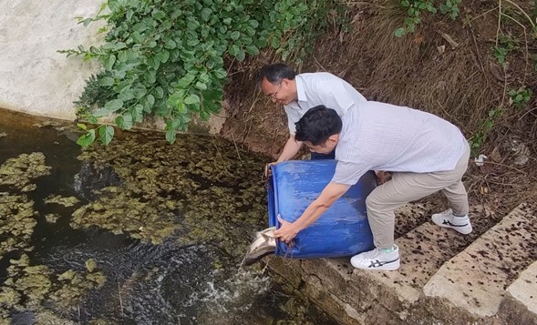 5月27日,我校定点帮扶的南充市嘉陵区龙蟠镇下院山村淡水鱼养殖基地迎来了一批新成员,学校捐赠的600余斤优质鱼苗欢快地游入了它们的“新家”,激活了产业振兴的“一池春水”,为村集体经济注入了新的活力。