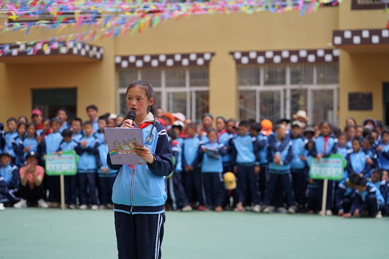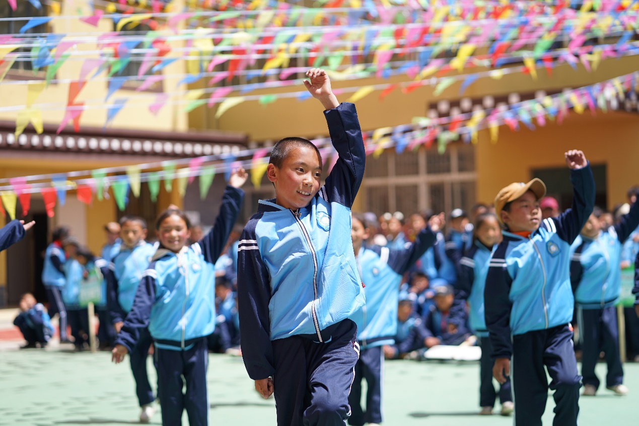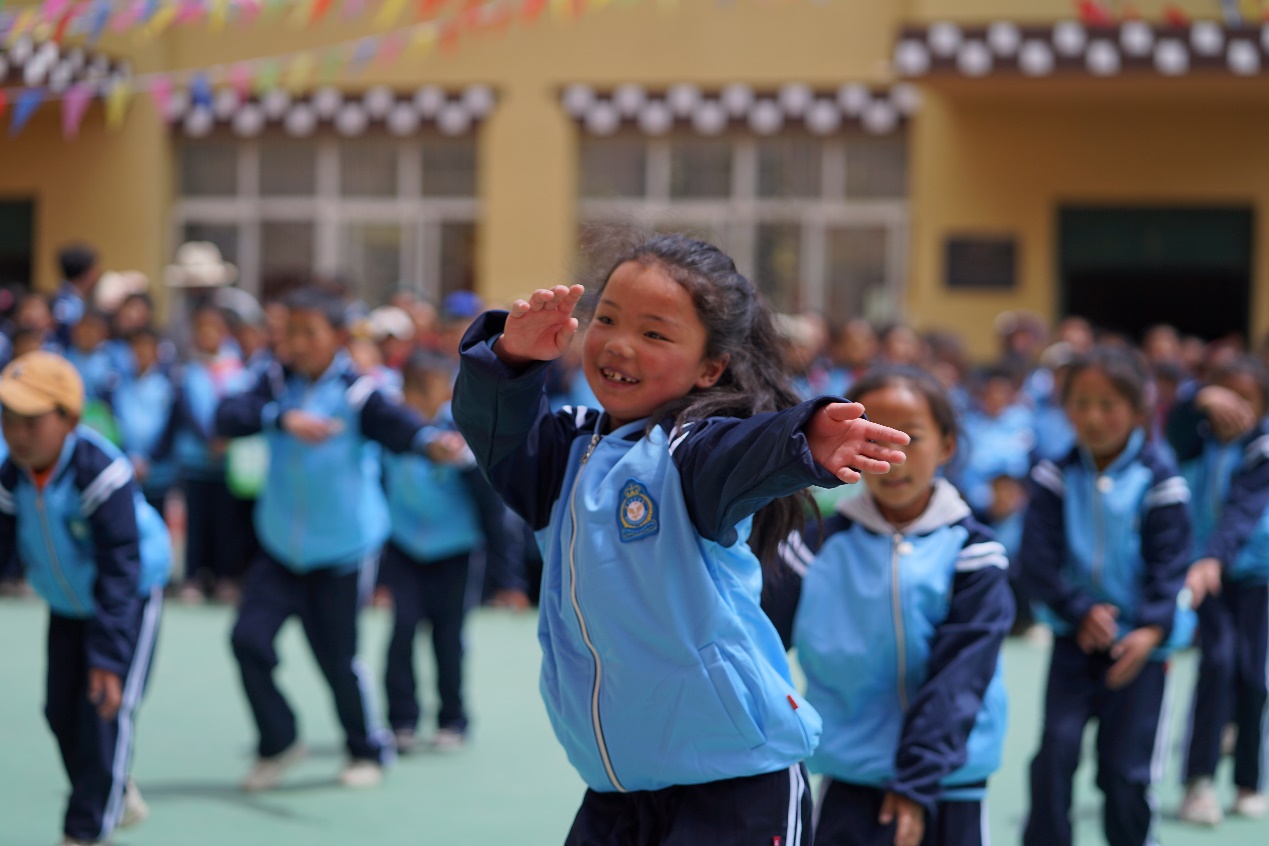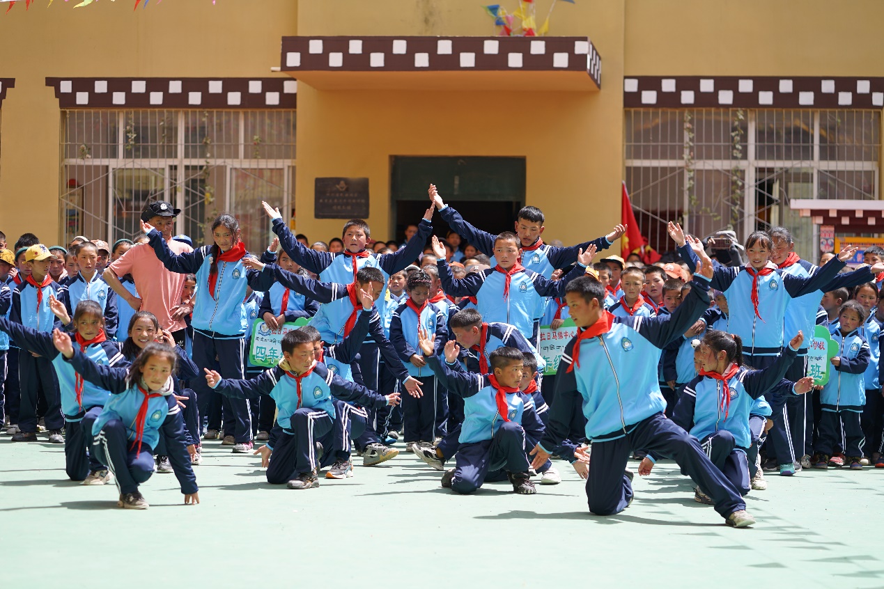 重庆大学泸州校友会执行副会长严强讲话 最后,各年级孩子们为来宾热情地表演了传统藏族舞蹈,孩子们竞相展现自己优美的舞姿,每一支舞蹈都传递着孩子们的喜悦,每一个孩子的笑容都那么天真纯朴。随着孩子们《感恩之心》的歌声,现场的所有人都沉浸在快乐和感动中。