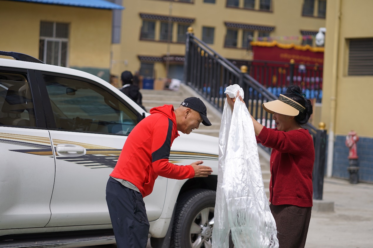 各校友会代表 31日上午9:30,四所高校的泸州校友会团队代表来到拉日马小学,泽巴校长率领学校校级班子成员向远到而来的爱心人士敬献哈达,全体学生身穿崭新的校服,列队迎接,脸上洋溢着幸福的笑容。