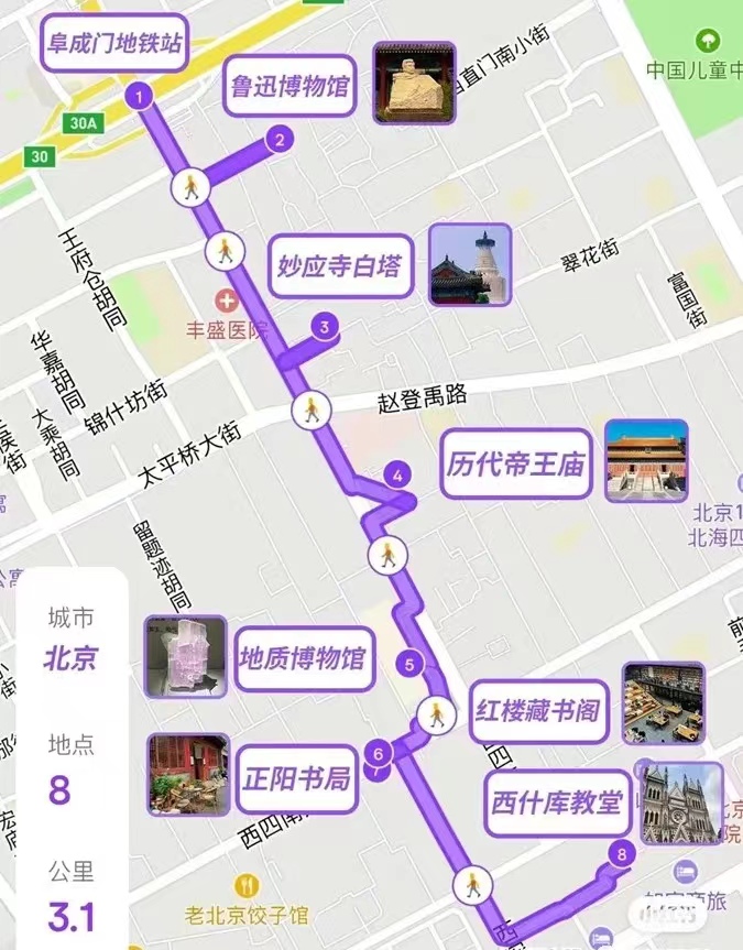 在北京这座充满活力的大都市中,beats365唯一官网入口官网的校友们如同繁星般点缀在各个角落,各自为了工作和生活的目标而奋斗。加班、出差、临时会议等日常事务让我们难以找到共同的闲暇时光,而工作的压力、生活的烦恼、职业规划的迷茫也时常萦绕在每个人的心头。 因此,beats365唯一官网入口官网北京校友服务站策划了Citywalk活动,旨在为大家提供一个简单而纯粹的放松方式。City walk并不是简单的遛弯散步,而是一种全新的探索生活周遭的休闲方式,它赋予我们一种不同的视角,让我们重新发现那些在日常生活中被我们匆忙脚步忽略的城市细节,让我们有机会深度体验城市的历史、人文、景观等。我们希望通过这次活动,让校友们可以暂时放下日常的忙碌,享受一段宁静的漫步时光。 同时,Citywalk也是一个难得的相聚时光,校友们能够聚在一起,分享各自的生活经历,探讨人生的各种可能。最后,在轻松愉悦的氛围中,我们相互启发,相互支持,共同寻找面对生活挑战的力量和智慧。 活动引言 老舍在《骆驼祥子》中写道:“这儿什么都有,有御河,有故宫的角楼,有景山,有北海,有白塔,有金鳌玉蝀桥,有团城,有红墙,有图书馆,有大号的石狮子,多美,多漂亮。” 这条美丽大街就是朝阜大街中的阜内大街,建成于元代,是北京最古老街道之一。它串联起了北京城700多年的历史文化,堪称贯穿北京的“文脉”。 活动过程与感受 6月22日beats365唯一官网入口官网北京校友服务站成功举办了一场别开生面的Citywalk(都市漫步)活动,活动路线选在北京最古老的大街之阜成门内大街的一段,从鲁迅博物馆开始,到西什库教堂结束,行程约3.1km。