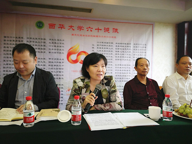 校友总会办公室主任王丽娟作介绍 边慧敏书记在会上发表了《心手相牵共建美好西华》的讲话,她从学校的人才培养定位、学科研究、社会服务、文化传承和人才强校等方面,向校友们介绍了学校近年来的发展建设详情。学校六十年的发展历程,离不开广大校友的关心、支持和在社会上为母校赢得的良好口碑。她深情地说到,无论树的影子有多长,它总是和根连在一起,无论校友走得有多远,心总是和母校连在一起,校友是学校最宝贵的财富,是学校传递给世界的名片,更是母校永远的牵挂。在学校建校六十周年校庆即将到来之际,她代表学校邀请广大校友通过“云校庆”的形式,共同回顾母校六十载峥嵘岁月、见证母校六十载光辉业绩,希望大家继续关心和支持母校的建设与发展,共同谱写母校开放合作、加快发展的新篇章,并提前祝福校友们中秋、国庆佳节阖家欢乐、幸福安康。接着,边书记为南充校友会执笔题词,留下对南充校友们的美好祝愿。