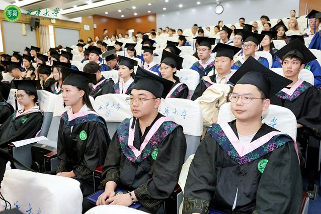 学院党委书记万远英教授颁发校友联络员聘书 学位帽上的流苏由右侧拨向左侧,寓意着毕业生们经过勤奋学习和不懈努力,圆满完成了阶段性的学业任务,迈向了人生新阶段,也期待他们在未来在无比广阔的舞台施展才干。在学位授位仪式现场,校党委副书记朱兴华教授,学院党委书记万远英教授,副院长尹德志教授、王贝教授,共同为毕业生拨穗并授予学位证书。 文轨车书郅大同、芳华绽放正当时。毕业不是结束,而是一个新征程的起点。学院举行毕业典礼暨学位授予仪式,不仅是对毕业生们学业成果的肯定,也是对他们未来人生道路的祝福和期许,希望毕业生们能够秉承“求、明德、卓越”的校训精神和“笃信求真,力行崇德”的院训要求,带着梦想与期许走向更广阔的天地,在人生新篇章中勇敢追寻梦想、实现梦想,创造属于自己的辉煌,为祖国的繁荣富强贡献自己的力量。