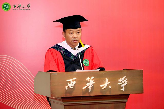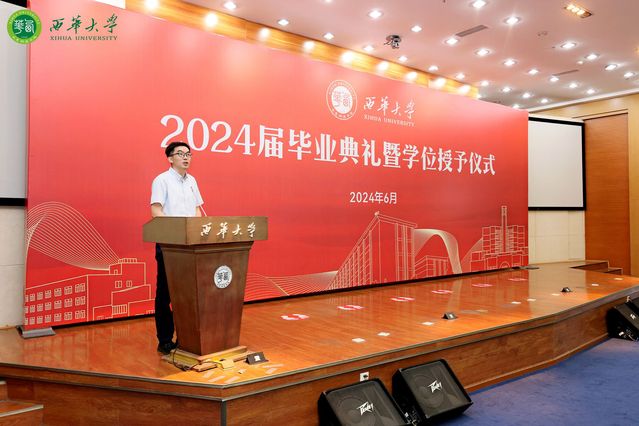 学院学位评定分委员会副主席、副院长尹德志宣读授位决定 在即将告别母校之时,3名优秀毕业生代表相继上台发言,表达了对学校、学院的感恩之情和对未来的期许,展示了作为西华马院人的担当,为母校、学院送上了最真挚的祝福,承诺将传承马院精神并继续谱写属于西华马院人的崭新篇章。 2020级本科生毕业生代表、省级优秀毕业生万德莎深情回顾了在校度过的美好时光,向学校、学院以及老师们表达了感激之情。她表示,“将永葆西华马院人的底色,继续做一个能说、会写、善思、明辨、有情怀的马院人。”