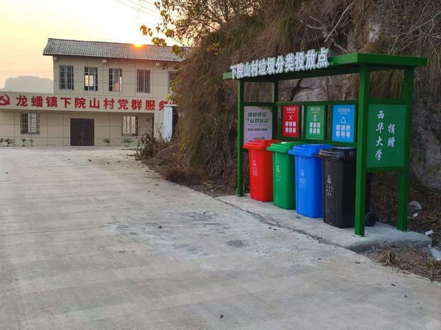 焕然一新的党群中心与垃圾投放亭