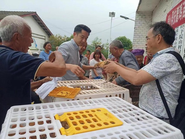 发放“庭院经济”试点鸡苗
