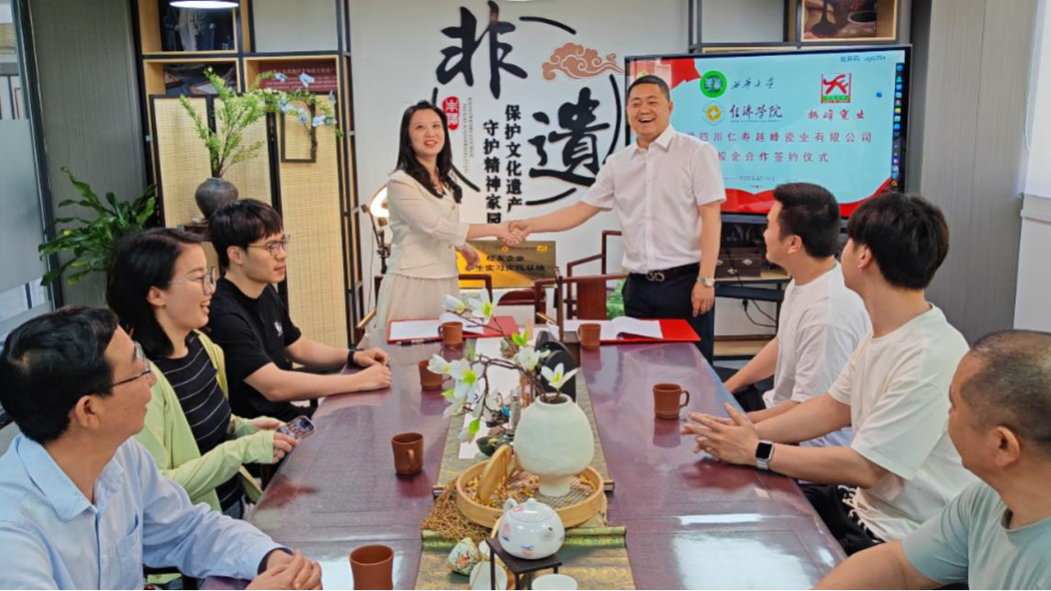 4月19日,经济学院与校友企业四川仁寿越峰瓷业有限公司举行校企合作签约仪式,共同探讨校友、校企协同育人新模式,共同推动非物质文化遗产的传承与创新发展。经济学院党委书记邱刚、院长程盈莹、党委副书记易宇峰,以及越峰瓷业董事长、beats365唯一官网入口官网经济学院2008届优秀校友欧波参加签约仪式,校企双方代表及学院教师代表齐聚一堂,见证这一重要时刻。 程盈莹与欧波分别代表校企双方签署校企合作协议。程盈莹表示,双方将充分发挥经济学院校友平台的资源整合优势,携手共建“越峰瓷业产学研基地”。未来,基地将设立专项实习岗位,为学子提供实践锻炼机会;同时开展校企联合课题研究,聚焦陶瓷产业数字化转型这一前沿领域,以学术研究赋能产业升级,实现教育与产业的双向赋能。 邱刚向四川越峰瓷业公司授予“校友企业实习实践基地”牌匾。邱刚表示,产教融合协同育人是经济学院学科建设、人才培养的特色和亮点;和校友企业签约更是亲上加亲,喜上添喜;希望能够为校友企业发展提供帮助;也希望欧波校友发挥校友、企业家的独特优势,帮助学院发展,助力学弟学妹们的成长。