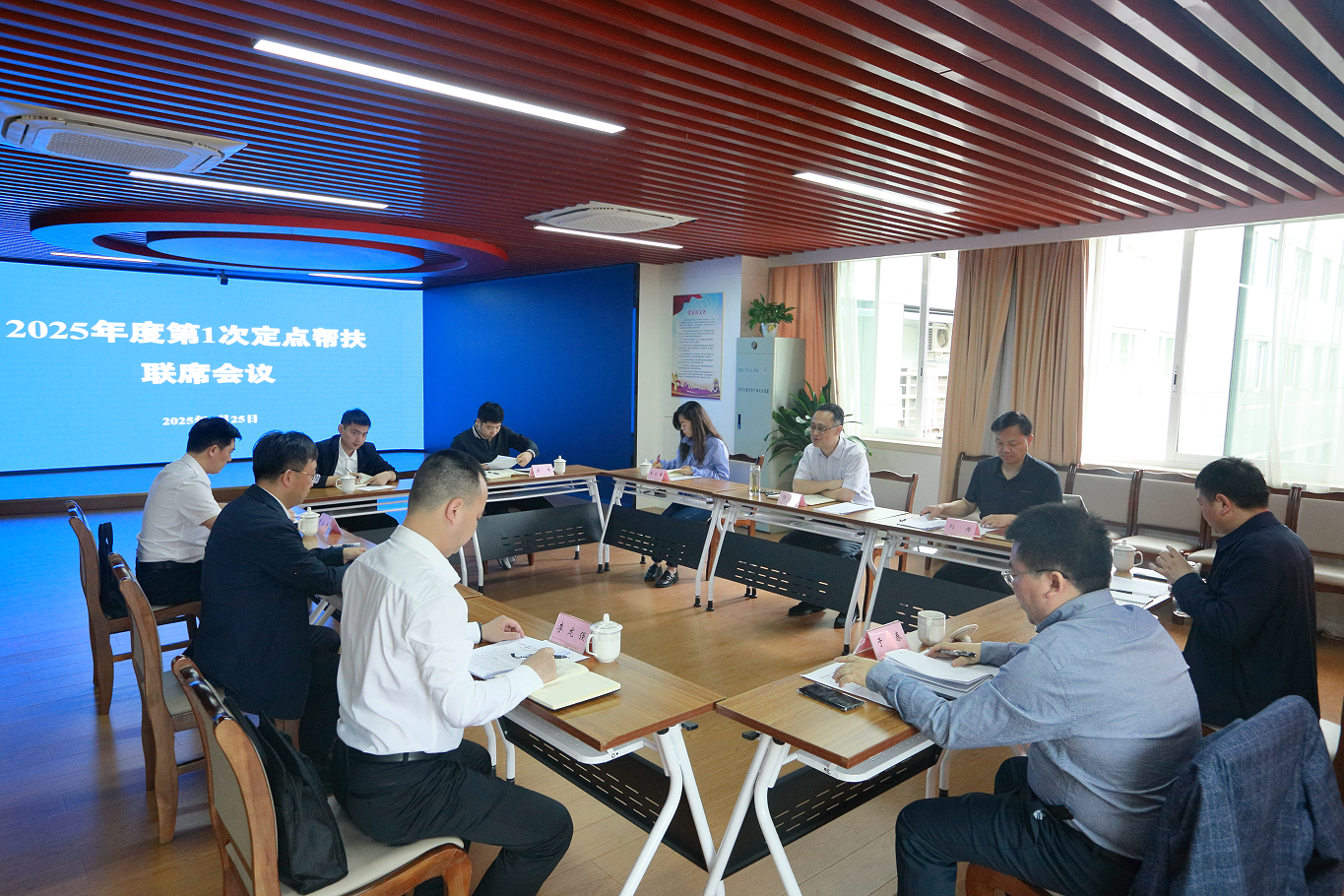 会议现场二 省直机关工委机关党委书记邓炜在最后的总结中肯定了大家的付出和成绩,对下一步的帮扶工作提出了建议,要求帮扶单位深入学习贯彻2025年的中央和省委一号文件精神,持续用力推动乡村全面振兴,进一步增强全面推进乡村振兴的使命感、责任感、紧迫感,坚决扛起定点帮扶的政治责任;进一步落实好帮扶机制,不断汇聚定点帮扶强大合力。同时,邓炜强调,在乡村振兴帮扶工作中要坚决守住不发生规模性返贫底线,不断完善监测机制,强化监测责任落实,精准确定监测对象,及时落实特殊群体救助、医疗保障等帮扶措施,拓宽群众就业渠道。 |