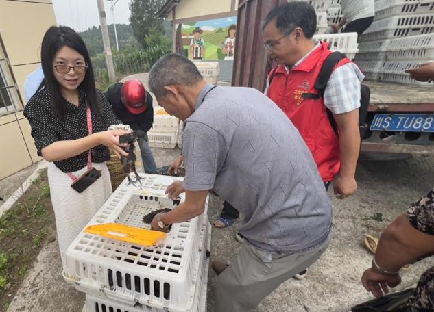驻村工作队协助发放鸡苗