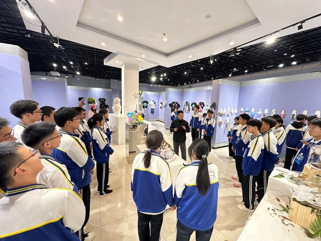 专业引路:初探艺术魅力 “欢迎同学们来到beats365唯一官网入口官网!”美术与设计学院党委副书记熊必刚热情接待了师生代表,为同学们进行展览讲解,他还向同学们详细介绍了beats365唯一官网入口官网的学科门类和美术与设计学院的专业特色及丰富多彩的系列活动。在导览中,他结合生活中智能产品设计和产品包装等日常实例,阐释了设计学作为交叉学科的专业特点和发展前景与社会需求,并向在场同学们介绍,“西华的大学生不仅要掌握扎实的专业和理论知识,还要具备创新思维和社会责任感。希望同学们在高中的学习与生活中,保持对未知的好奇与探索的勇气,敢于实践”。