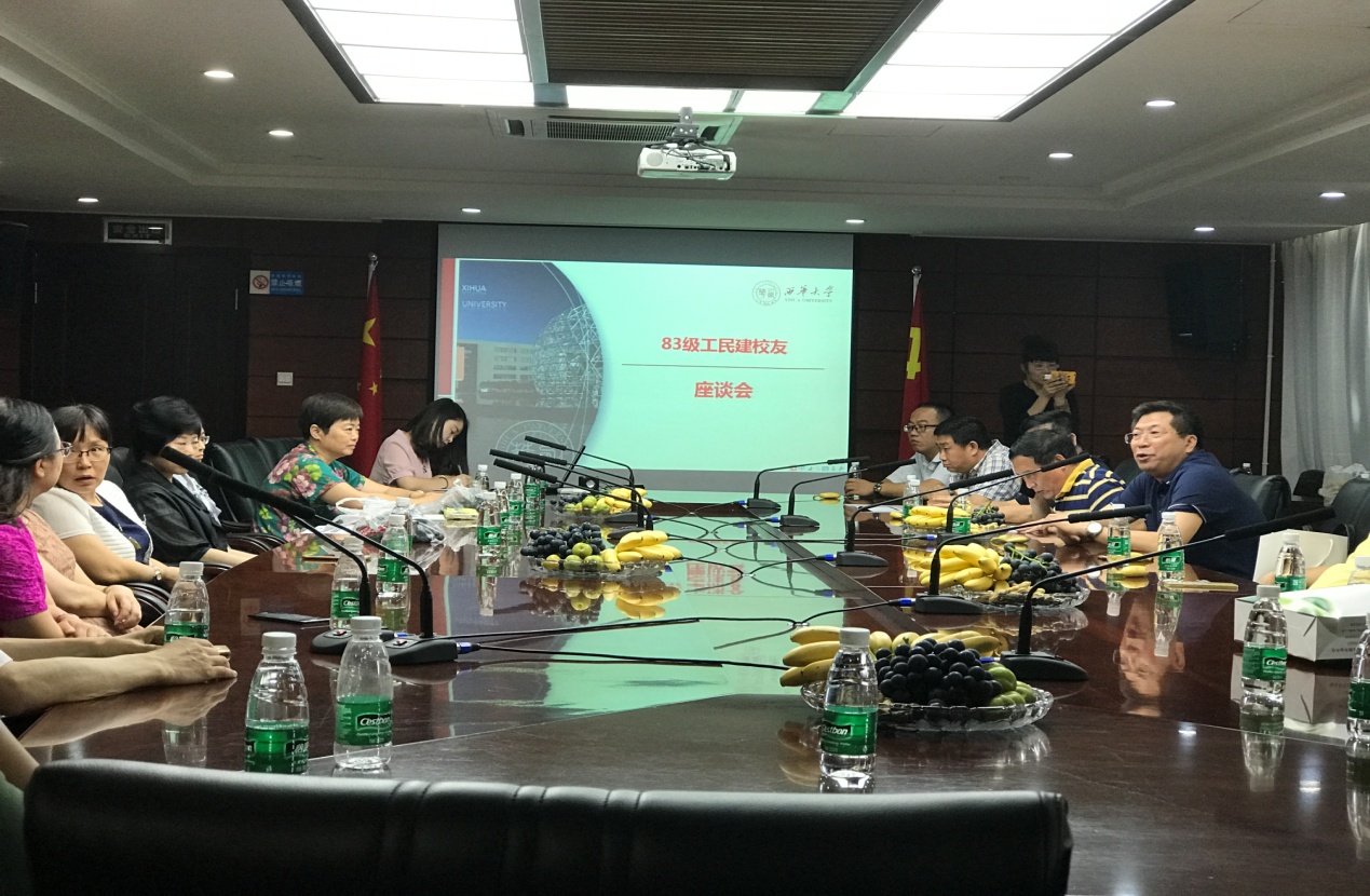 7月15日上午10:00,我校83级工民建专业校友毕业30周年座谈会在办公楼212会议室举行。副校长、校友总会常务副会长王政书与50余名校友亲切交谈,土木建筑与环境学院相关负责人、退休班主任、教师代表参加座谈。 在观看学校宣传视频后,王政书副校长代表学校对50余名校友的返校表示热烈欢迎,并由衷感谢校友们对学校建设的付出与贡献。他表示,学校的发展离不开学院老师和校友的共同付出,正是老一辈西华人打下的坚实基础,才成就了学校今天的发展。随后,王政书副校长向各位校友介绍了近年来学校在教学、科研、国际合作等方面的情况。