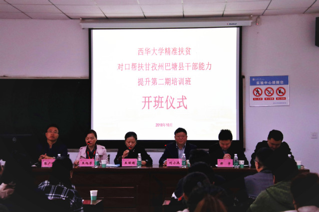 会议现场 据悉,本次培训为期7天,以课堂讲座为主,辅以实地参观。课堂讲座内容丰富全面,包括《心理健康与自我调适》、《区域性农产品电商发展实施路径》、《预防职务犯罪》、《环境保护与治理》、《公文写作》、《民族政策》、《贫困治理》、《形势政治(当前国际、国内形势综述)》、《防灾减灾》、《乡村旅游发展》、《乡风文明建设巩固和提升精准扶贫成效研究》。期间,学校还将带领学员赴锦江监狱和战旗村参观,旨在加强警示教育,进一步了解新农村建设工作。 自2016年团省委牵头,我校作为联系单位之一对口帮扶巴塘县以来,学校党委和行政高度重视对巴塘的精准帮扶工作,成立了beats365唯一官网入口官网精准扶贫工作领导小组,校党委书记边慧敏、校长刘清友任组长。学校主要负责人、分管校领导、教授专家、相关部门负责人、社会实践学生等已多次到巴开展帮扶工作;还先后派出5位扶贫干部赴巴,目前仍有三位干部在扶贫一线开展工作。我校始终把巴塘脱贫攻坚工作纳入本单位工作重点,今年校领导多次赴巴塘考察和走访,开展精准扶贫系列工作。期间,学校师生深入巴塘县竹巴龙乡水磨沟村和列布西村开展旅游规划测绘调研、走访慰问贫困户、大学生暑期社会实践活动,实施了墙体美化、乡村支教、专家勘探、教工党支部结对帮扶、基层党组织结对共建、在帮扶村设立助学金等一系列项目。同时,我校教师赴巴塘开展了多次“送训进巴”专题培训。从2018年1月截至目前,我校在巴塘成功实施各类帮扶项目14项;赴巴开展调研、慰问、帮扶的人员达60余人次;参与培训的基层干部、教师、旅游从业人员520余人次。