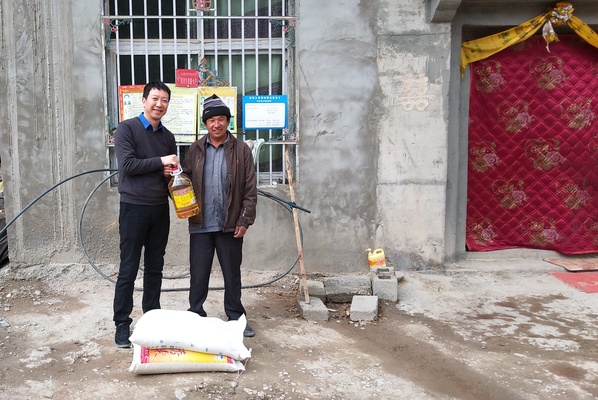 慰问贫困户 随后,郑鈜副校长一行来到结对帮扶的贫困户格次仁和扎西家中,送上各结对帮扶党组织党员个人捐赠的大米、面粉、食用油等慰问品。每到一户,郑鈜副校长都与贫困户亲切交谈,详细了解他们近期生产、生活、子女教育等情况,认真听取贫困群众对我校帮扶工作的想法、意见和期望。