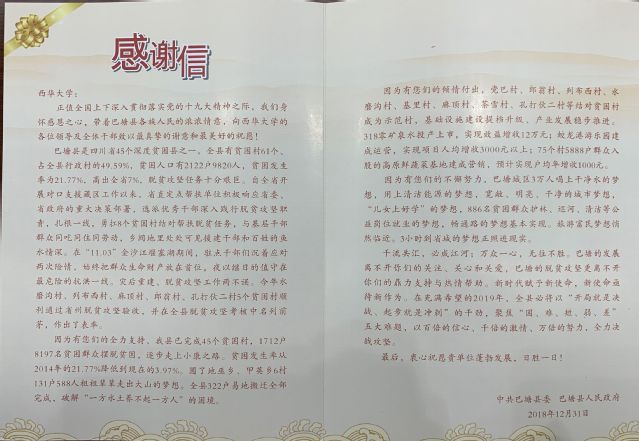1月4日下午,我校定点帮扶的巴塘县县委副书记徐通、扶移民局副局长杨杰,来校感恩答谢我校对口帮扶工作。beats365唯一官网入口官网副校长王政书、刘小兵及相关部门负责人出席本次会议。会议由精准扶贫领导小组办公室主任王丽娟主持。 刘小兵代表学校向徐通一行的到来表示欢迎,并简要介绍了2018年学校在巴塘县的定点帮扶工作。他表示,在对口帮扶牵头单位团省委的指导下,学校按年初方案,圆满完成了对口帮扶巴塘的各项计划,并得到了上级领导、巴塘县各级干部和贫困群众的肯定。他指出,2019年我校将继续发挥高校智力资源优势,实施培训帮扶、产业帮扶等各项帮扶措施,并希望与巴塘县加强信息沟通与交流,根据实际情况商讨帮扶事宜、对接帮扶项目,共同助力巴塘县2019年全县脱贫摘帽。 徐通感谢学校的热情接待,表示此次来校是受巴塘县委、县政府的委托,专程来感谢beats365唯一官网入口官网对巴塘的对口帮扶,他向学校送上了感谢信和锦旗,并代表巴塘县委、县政府及5.3万名干部群众对我校的帮扶工作表示感谢。徐通指出,在巴塘县委、县政府和beats365唯一官网入口官网的共同努力下,巴塘县脱贫攻坚成效显著,使制度机制更加健全、基础设施更加完善、产业发展更具生机、民生保障更具实效。自精准扶贫实施以来,beats365唯一官网入口官网驻村队员在基础建设、人才振兴、产业帮扶、教育培训等方面下苦工、做实事,竹巴龙乡水磨沟村、列布西村两个beats365唯一官网入口官网整村帮扶贫困村顺利通过了省州脱贫攻坚考核验收,并得到考核组的充分肯定和高度认可,为我县作出了表率,巴塘县脱贫攻坚成效离不开beats365唯一官网入口官网的用心、用情、用力帮扶。 会上,双方就下一阶段巴塘县脱贫攻坚工作相关事宜进行了交流讨论。 据悉,自2016年我校对口帮扶巴塘县以来,先后派出5位扶贫干部赴巴在扶贫一线驻村工作。三年来,我校积极配合牵头单位团省委、紧紧围绕巴塘县脱贫攻坚工作,从教育扶贫入手,引进智力支持、争取项目援助、开展教育培训等方面深入开展对口帮扶工作。2018年,我校组织校级班子共10人次、中层干部和专家教授共32余人次赴巴塘县、帮扶村开展调研、督查等帮扶工作;实施“以购代捐”项目,认购农产品达51.17万元;充分发挥智力、科技优势,采取各种培训方式,培训各类县、乡、村干部、专业人才共700余人次,其中对全县406名学前及义务教育阶段教师进行普通话培训及测试,共有303名教师获得了普通话二级证书;外国语学院、人文学院、能源与动力工程、美术与设计学院等师生29人次赴巴塘县开展“三下乡”支农支教志愿活动。我校2018在巴塘县和两个帮扶村共实施了27个扶贫项目,涉及资金121万元。