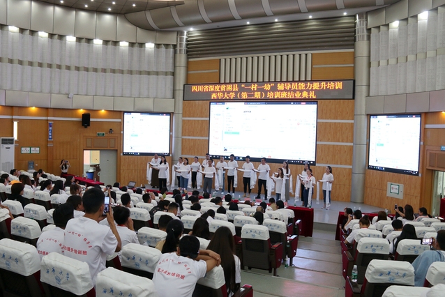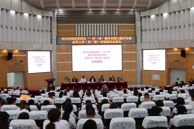 9月18日下午,四川省深度贫困县“一村一幼”辅导员能力提升beats365唯一官网入口官网(第二期)培训班结业典礼在我校四教报告厅举行,176名受训学员经过一个月充实的培训后,圆满结业。副校长刘小兵,培训工作组各成员单位负责人、郫都区幼儿园园长代表、九龙县和石渠县3名跟班管理干部和全体受训学员参加了结业典礼。大会由继续教育学院院长阮永生主持。