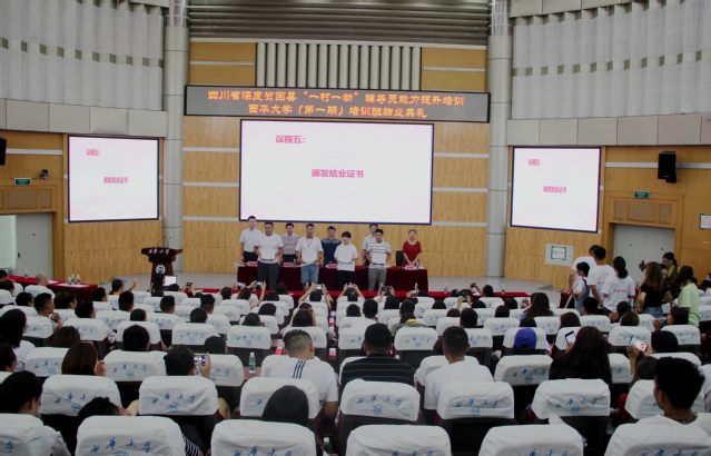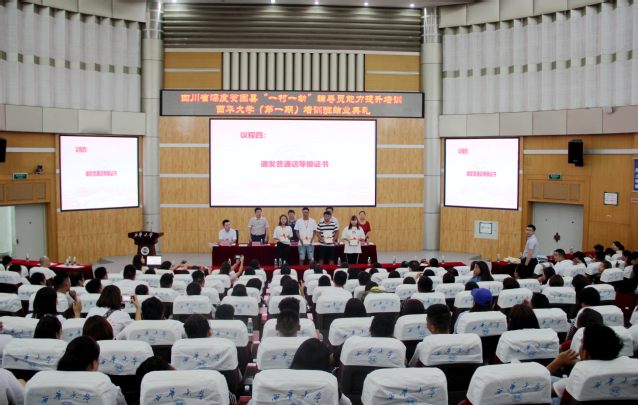 7月19日上午,四川省深度贫困县“一村一幼”辅导员能力提升beats365唯一官网入口官网(第一期)培训班结业典礼在我校四教报告厅举行,164名巴塘县乡村幼儿教师在我校经过一个月充实的培训后,圆满结业。副校长刘小兵,培训工作领导小组各成员单位负责人及工作人员、红光镇16所幼儿园园长、巴塘县跟班管理干部、巴塘幼儿园院长代表、受训学员参加了结业典礼。大会由我校继续教育学院院长阮永生主持。 本次培训通过集中系统培训和跟岗学习等形式,帮助“一村一幼”辅导员熟练掌握运用标准普通话和保教专业技能,形成正确的教育观、儿童观和良好的师德师风,切实提高“一村一幼”幼教点保教保育和管理水平,让学前儿童“学好普通话、养成好习惯”。学校高度重视本次培训工作,根据省教育厅培训要求,结合学员学情和我校相关专业学科资源,统筹协调郫都区幼儿园跟岗学习点,通过专家讲授、跟岗学习、问题研讨、经验分享、课例展示、技能训练等形式,组织开展了本次培训工作。 会上,人文学院党委书记徐元彬对本次培训的师资、教学内容、教学方式、组织管理、取得的成效,存在的问题及建议等方面作了总结;与会领导为参训学员代表颁发了普通话等级证书和结业证书;学校扶贫办主任王丽娟宣读了对优秀学员的表彰决定,并为66名优秀学员颁发荣誉证书。