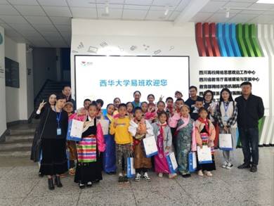 与陈龙灿教授合影 经过此次交流学习,孩子们感受了大学的人文气息、学术氛围和多彩的大学生活,增强了学习的信心和动力,对努力学习和大学生活有了更深刻的认识,更加坚定了今后的学习目标,也增强了藏区孩子对祖国繁荣富强的自豪感。 据悉,此次活动是巴塘县教育局与成都双流区教育局共同开展的以进成都、进学校、进家庭“三进”活动为主题的格桑梅朵绽放工程活动之一——“进高校”。自2016年以来,我校多次邀请对口帮扶的甘孜州巴塘县学生走进西华校园参观体验,获得了社会各界的充分肯定。