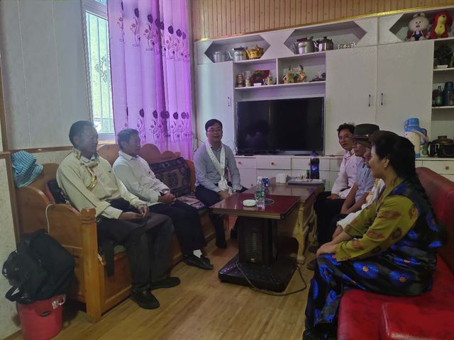 村民们载歌载舞欢庆、表达感谢 随后,工作组一行走访水磨沟村看望普布、尼玛等贫困户,两户村民的孩子都在前不久检查确诊为过敏性紫癜,多次赴成都检查、治疗,花费很大。为进一步巩固脱贫成果,教务处、学生工作部等牵头单位为每户凑集医疗救助金2000元。副校长刘小兵在入户座谈中嘱咐小孩要注意生活作息规律,提醒家长要重视孩子的学习教育。