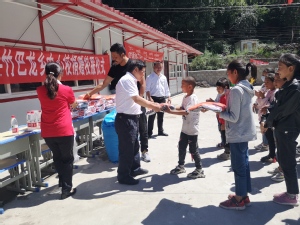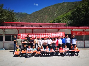 刘小兵副校长一行为竹巴龙乡中心校学生代表发校服 合影留念 期间,校党委组织部、统战部、党校党支部与水磨沟村党支部、列布西村党支部开展了支部结对共建活动。校党委组织部组织科科长周强老师就近期村两委、致富带头人等拟来我校开展考察学习的安排进行衔接。
