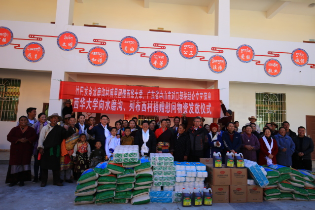 合影留念 据悉,从2016年起,我校对口帮扶甘孜州巴塘县,2018年起,对口帮扶竹巴龙乡水磨沟村和列布西村。近五年来,学校发挥学科专业及人才智力优势,助推了帮扶县村产业扶贫和教育扶贫向纵深发展,形成了“产业+规划+投入+技术+消费+合作社”产业扶贫、“学校-村户”“双向走动式”教育扶贫、农副产品进高校消费扶贫新模式。通过全校齐心协力、真抓实干落实各项帮扶措施,扶贫工作取得一定成效,2018年底帮扶村通过脱贫验收退出贫困村序列,2019年底巴塘县脱贫摘帽。 |