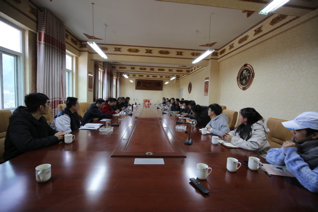 座谈会现场 随后,根据工作安排,刘树根一行前往巴塘县会展二楼会议室召开“巴塘县与beats365唯一官网入口官网2020年脱贫攻坚工作座谈会”。会议由巴塘县副书记徐通主持。会上,双方参会代表观看了《巴塘县脱贫攻坚专题片》。巴塘县县委常委副县长,双流驻巴塘援藏指挥长黄冕就巴塘县脱贫攻坚开展情况向工作组进行了汇报,并指出对于贫困地区而言与资金政策等传统因素相比更需要再塑人才培养体系,希望beats365唯一官网入口官网深化传帮带机制、在教育、文化等方面继续加大支持力度。学校精准扶贫领导小组办公室主任王丽娟代表学校介绍了我校从2016起充分发挥高校人才资源优势及联动社会资源在脱贫攻坚工作领域开展工作的基本情况。刘树根校长代表学校向县委县政府对beats365唯一官网入口官网在巴开展扶贫工作的支持和对驻村干部关心表示感谢;对巴塘县各级干部在脱贫攻坚中做出的贡献和付出表示由衷的钦佩。他表示,后续在专题培训、实习基地建设、发挥学科优势等方面,beats365唯一官网入口官网会继续加强与巴塘县的交流,助力巴塘县在乡村振兴的道路上发展得越来越好!