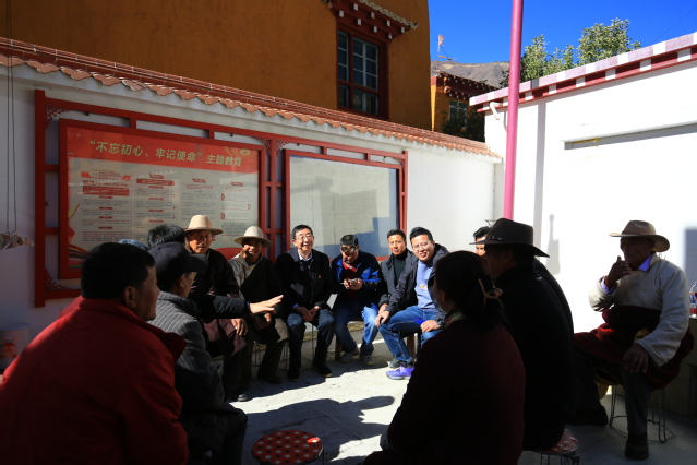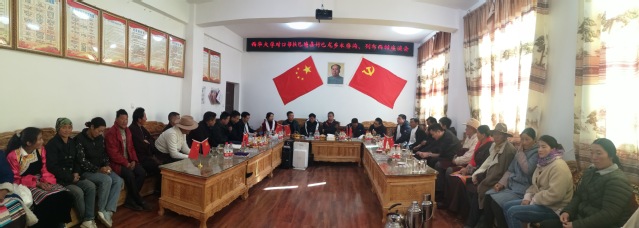 看望贫困户达哇次仁 随后,工作组一行前往水磨沟村村集体活动室开展集中慰问和座谈。在村集体活动室道路两旁,两村村民身着欢迎尊贵客人的盛装,自发组织起来,热情地献上哈达,以藏区最高礼节迎接刘树根一行工作组的到来。工作组一行在村活动室召开“beats365唯一官网入口官网对口帮扶巴塘县竹巴龙乡水磨沟、列布西村座谈会”。会议由我校驻村干部张广峰主持。