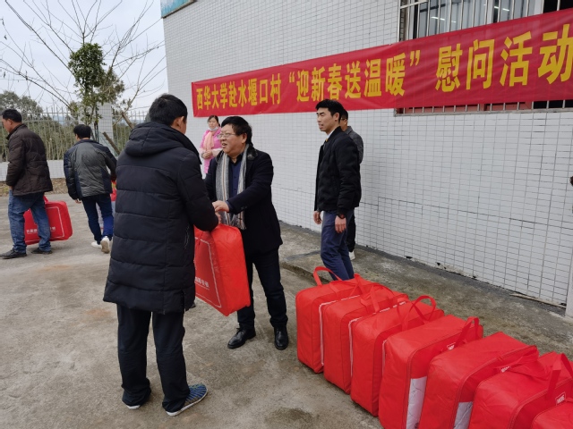 岁末寒冬,春节将至,为进一步落实脱贫攻坚向乡村振兴有效衔接“四不摘”的要求,让脱贫户在即将到来的农历春节中感受到温暖,向帮扶村群众传递关心和关爱,同时为驻村干部提供坚强的支持,1月24日,学校副校长刘小兵带领党委组织部、乡村振兴办公室相关负责同志,赴我校定点帮扶的南充市嘉陵区龙蟠镇水堰口村开展“迎新春送温暖”活动。我校驻村干部雷云中、牟志强陪同慰问。