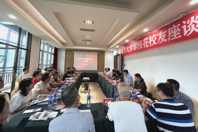 会议现场 座谈会上,攀枝花校友会会长、1983级水机专业校友潘祖高代表攀枝花校友会向母校领导、老师一行的到来表示热烈的欢迎。他说到,校友们都有着在母校学习和生活的共同回忆与情感共鸣,母校的培养和校友情谊的牵绊让校友们怀着深深的西华情相聚在校友会的大家庭,攀枝花校友会的工作离不开母校的关怀和每一位校友的热心参与。同时,攀枝花的校友们一直以来关心、关注母校的建设发展,未来也将继续积极发挥攀枝花校友会的纽带作用,联络和凝聚更多校友在校友会的平台上加强联络、互帮互助,助力校友和母校的共同成长。