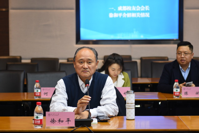 徐和平会长讲话 校友代表分别就招商引智促成校地合作、推动校地战略合作、搭建校友资源整合平台、举办“首届(西华)校友经济论坛”、开展知识产权人才联合培养、推进学校食堂食品安全智能化管理、建立校友服务中心和共建智慧校园几个方面提出合作建议和设想,并与相关单位负责人就具体的合作内容进行了详细的交流讨论。