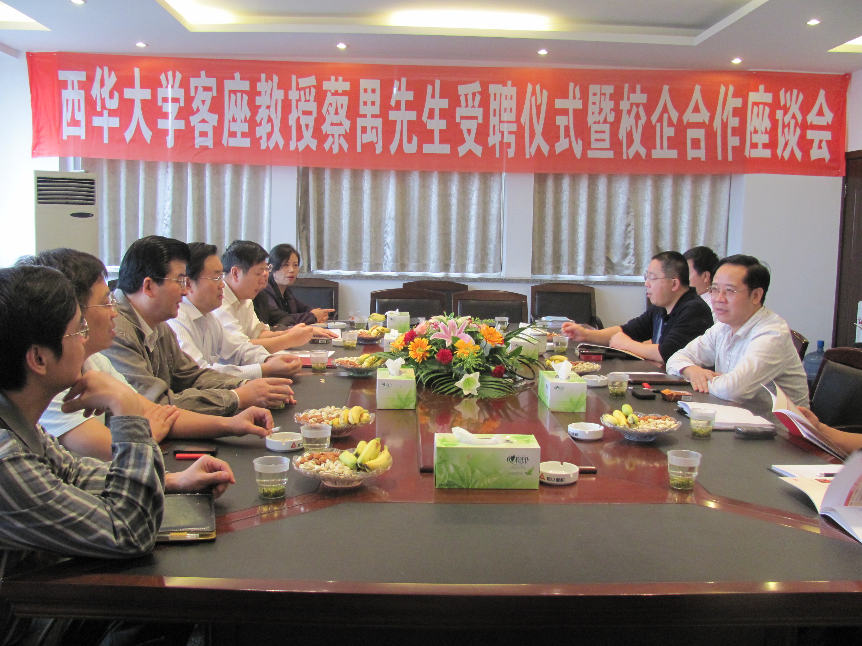 蔡汉军首先肯定了我校校友蔡禺自毕业以来,一直默默无闻地扎根基层,立足生产第一线,在技术上不断创新,在管理上深入改革,努力工作,成长为一名优秀企业家。随后,蔡汉军介绍了学校的基本情况,并表示学校目前正在积极寻求与企业的合作,努力把学校的科研成果转化为生产力,并以此来带动学校科研的进一步发展。