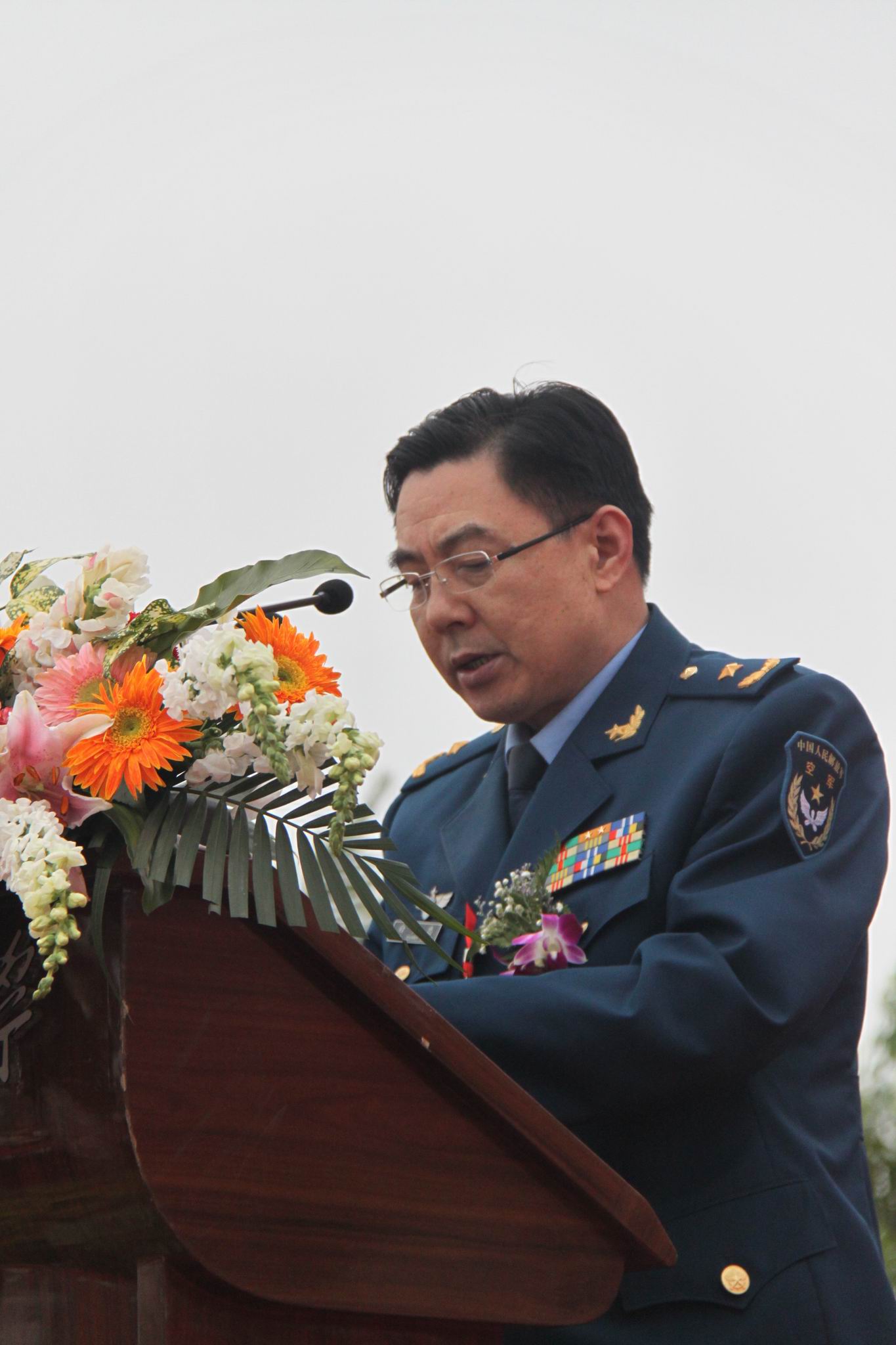 成都军区空军副政委白广忠少将宣读中国人民解放军空军和成都军区空军贺信