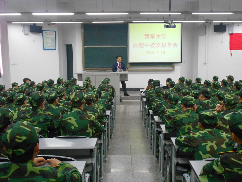 会上,白朝华校友分享了自己在大学期间的学习经历和工作上的心得体会,号召同学们要注意以下几点:1、树立热爱祖国的心,有国才有家,只有国家强大了,我们中国人在世界上才更有尊严;2、学习非常重要,要以严谨、勤奋、踏踏实实的态度不断地学习,发现自己的不足;3、坚持锻炼身体,只有好的身体才能接受未来的困难和挑战。4、为人处世非常重要,要以尊重、平等、友好的态度对待周围的人。培养自己成为一个不卑不亢的人,一个有修养的人,一个各方面能代表自己的人;5、遇到挫折时,要咬牙坚持,挫折可以锻炼自己的心智。遇到困难,应找问题、找原因。6、尽量去考研,使自己能够获得更高的平台。
