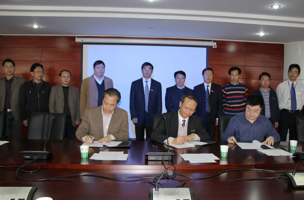 孙卫国校长与魏晓天会长(前左一)、叶刚副会长(前右一)签署了捐赠协议书