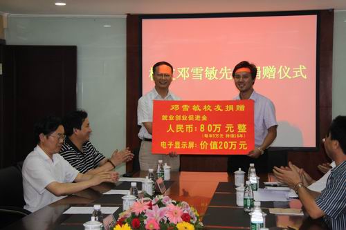| 土木工程99级校友邓雪敏向母校捐赠电子显示屏和就业创业工作促进金 |