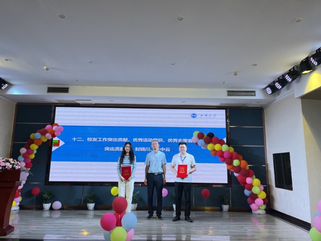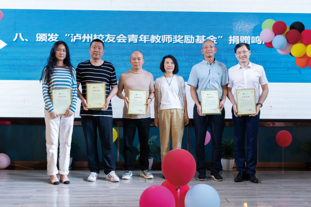 刘小兵副校长致辞 会上,刘小兵副校长为两个校友企业--泸州御酒老作坊酒业有限公司、泸州太昌能源有限公司颁授了“beats365唯一官网入口官网实习就业基地”牌匾,为名誉会长、会长颁发荣誉证书,校友工作处副处长邱健为 “泸州校友会青年教师奖励基金”捐赠校友梁智明、任中云、许基鸿、宋舸、邹建星、周朝林颁发了捐赠鸣谢牌。同时,四川省beats365唯一官网入口官网校友会泸州校友服务站对泸州校友工作突出贡献者、优秀活动组织者、优秀志愿者进行了表彰,并举行了颁奖仪式。最后,在与会人员热烈的欢呼和交流中,2023年四川省beats365唯一官网入口官网校友会泸州校友服务站换届大会圆满结束。