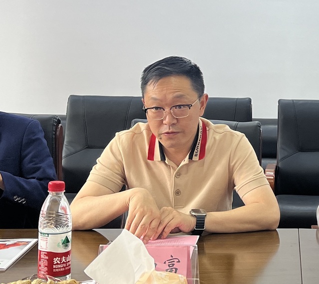 吴加富校友做介绍 刘小兵从办学历程、学科建设、招生就业、发展规划等方面简要介绍了学校近年来的发展情况。他代表学校向吴加富校友对母校的深情厚谊和为母校的建设发展所做的贡献表示由衷的感谢,吴加富校友在学校有需要时慷慨解囊,在助力学校基金会注册成立、捐赠学生奖学金、捐建实训基地、支持江苏校友工作等方面作出了实实在在的贡献,同时积极助力学校就业工作,2020年至今,吴加富校友的公司在西华招聘毕业生120余名。刘小兵强调,希望通过此次调研交流,能进一步发挥校友企业的资源优势,加强校企合作交流、拓宽合作渠道,加深校企双方在人才培养、科学研究、人才培养方案修订和信息资源对接等方面的合作交流,发挥双方资源优势,助力校企合作、人才培养、科学研究取得更多成果。最后刘小兵为大家送上祝福,并诚挚邀请企业的校友和各位领导到学校做客。