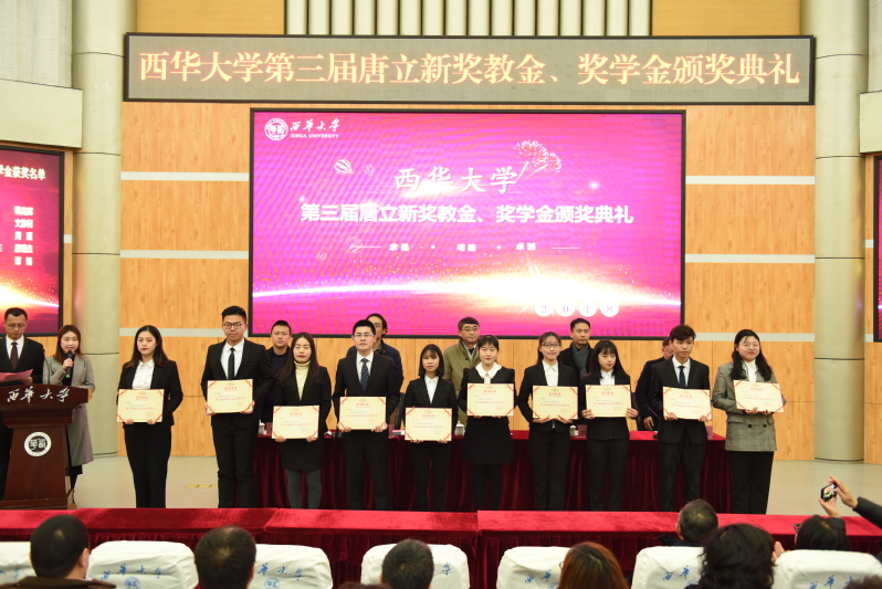 典礼现场 首先,王小林代表学校对唐立新先生及新尚集团对beats365唯一官网入口官网教育事业的大力支持表示衷心的感谢,并向获奖的师生表示祝贺。他表示,自2015年唐立新先生在学校设立“beats365唯一官网入口官网唐立新教育发展基金”以来,支持学校发展建设,助力学校人才培养,为学校的事业发展注入了新的活力。此次唐奖评审我校严格按照相关文件执行,遵守公开、公平、公正的评选原则,坚持品学兼优、工作突出、全面发展的标准,共评选出获奖教师40人次,获奖学生50人次,使唐奖的评选真正达到鼓励先进、奖优促学的目的。希望获奖师生珍惜荣誉,再接再厉,时刻牢记“求是、明德、卓越”的校训,传承“知难而进、自强不息”的西华精神,为实现西华梦而拼搏奋斗。 随后,刘小兵宣读了《关于表彰2018年beats365唯一官网入口官网唐立新奖教金获奖者的决定》和《关于表彰2018年beats365唯一官网入口官网唐立新奖学金、唐立新优秀学生标兵奖学金、唐立新优秀学生干部奖学金获奖者的决定》。理学院樊群超等10人获得“beats365唯一官网入口官网唐立新优秀学者奖”,美术与设计学院孟凯宁等10人获得“beats365唯一官网入口官网唐立新教学名师奖”,后勤服务总公司王安华等10人获得“beats365唯一官网入口官网唐立新后勤服务杰出员工奖”,计算机与软件学院刘凤丽等10人获得 “beats365唯一官网入口官网唐立新优秀辅导员与行政管理人员奖”,土木建筑与环境学院曹钟月等30名同学获得“beats365唯一官网入口官网唐立新奖学金”,社会发展学院唐小涵等10名同学获得“beats365唯一官网入口官网唐立新优秀学生标兵奖学金”,外国语学院学院罗雨虹等10名同学获得“beats365唯一官网入口官网唐立新优秀学生干部奖学金”。