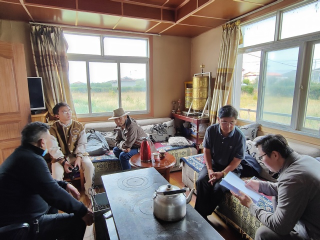 活动第一站,实践团一行来到共青团红原县委开展座谈,受到团县委负责人的热情接待,并对实践期间活动方案进行深入细致的探讨。活动第二站,实践团赴红原县瓦切镇、阿木乡开展调研活动,分别在瓦切镇镇长兰木科和阿木乡党委书记罗亚修的陪同下,和当地基层干部、青年劳动力、农牧民座谈交流,让当地居民更深刻体会到语言相通才能让中华民族像“石榴籽”一样紧紧抱在一起的道理。随后,通过发放问卷、个别访谈等方式,聚焦贫困民族地区青少年学生和青壮年劳动力两类重点群体开展调查,摸清国家通用语言文字的使用状况、学习状况和学习需求,为推普助力乡村振兴提供相关参考数据。
