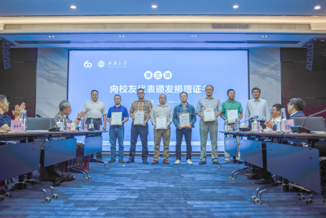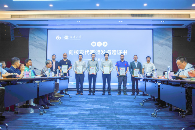 捐赠仪式上,副校长、校友总会常务副会长王政书宣读了各地校友会及校友捐赠情况。学校向校友会及校友代表颁发捐赠证书及纪念品。