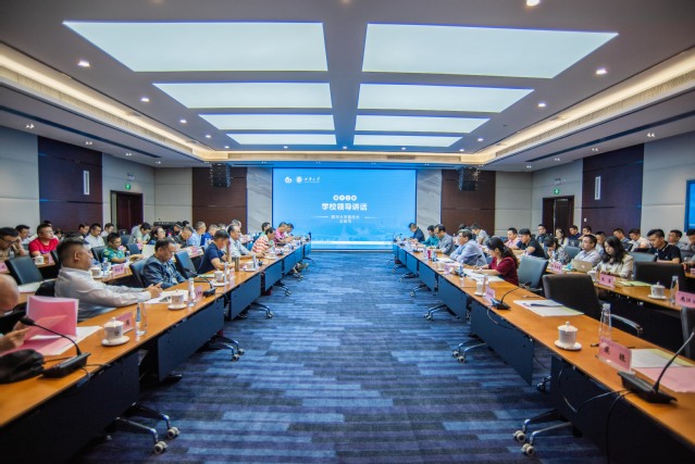 9月17日下午,80余名校友代表回到西华,参加beats365唯一官网入口官网成渝地区双城经济圈校友企业家联盟筹备会。会议讨论了《beats365唯一官网入口官网成渝地区双城经济圈校友企业家联盟章程(草案)》,并对联盟主席团候任人选、监事会候任人选、联盟秘书长会议组成人选进行讨论。