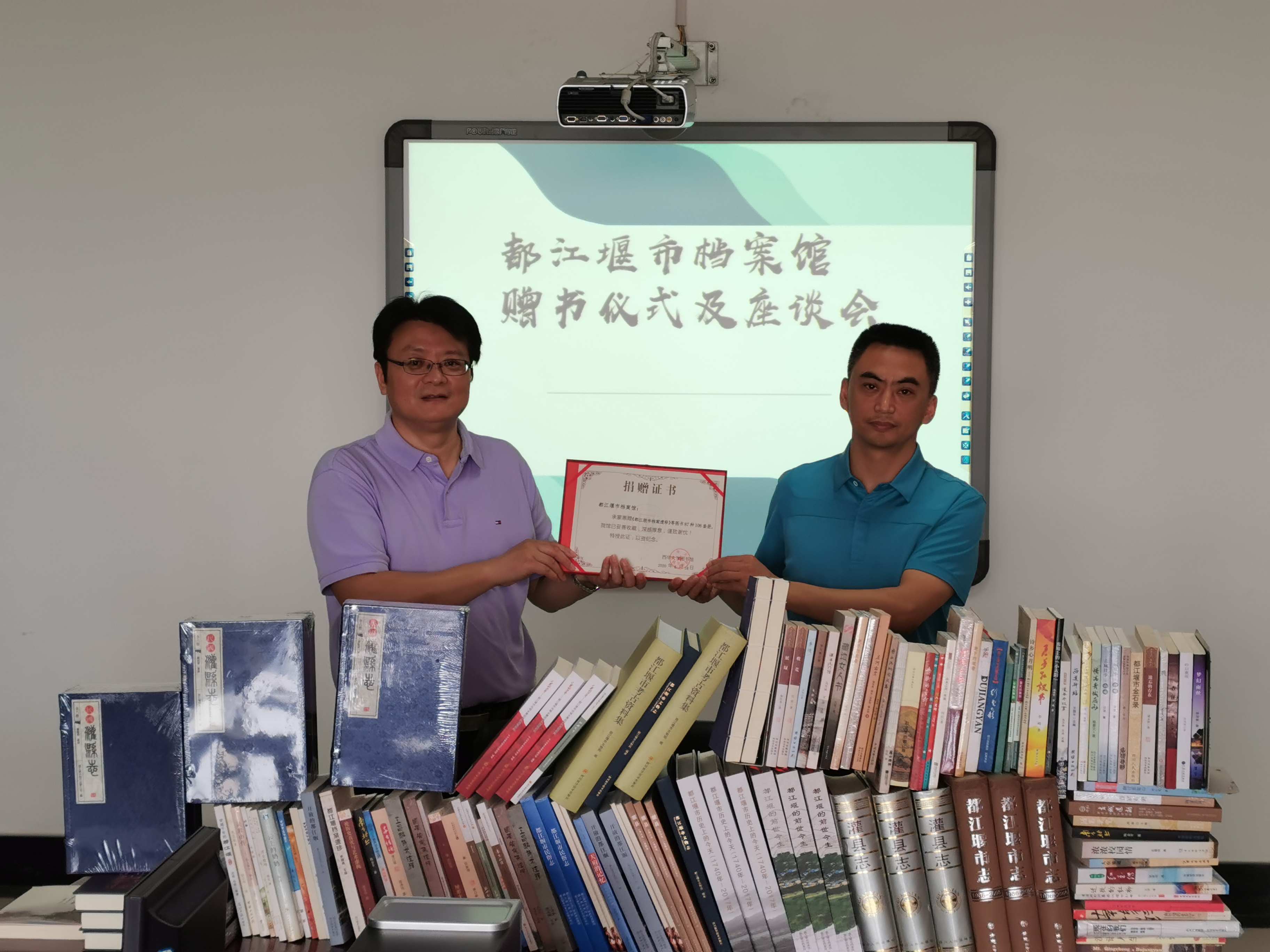 在捐赠仪式上,钟理馆长代表都江堰市图书馆向我校捐赠民国版《灌县志》《都江堰市志》等图书86种138册。潘殊闲馆长回赠了由beats365唯一官网入口官网地方文化资源保护与开发研究中心编著的《蜀学》辑刊、《地方文化保护》辑刊等50余册。